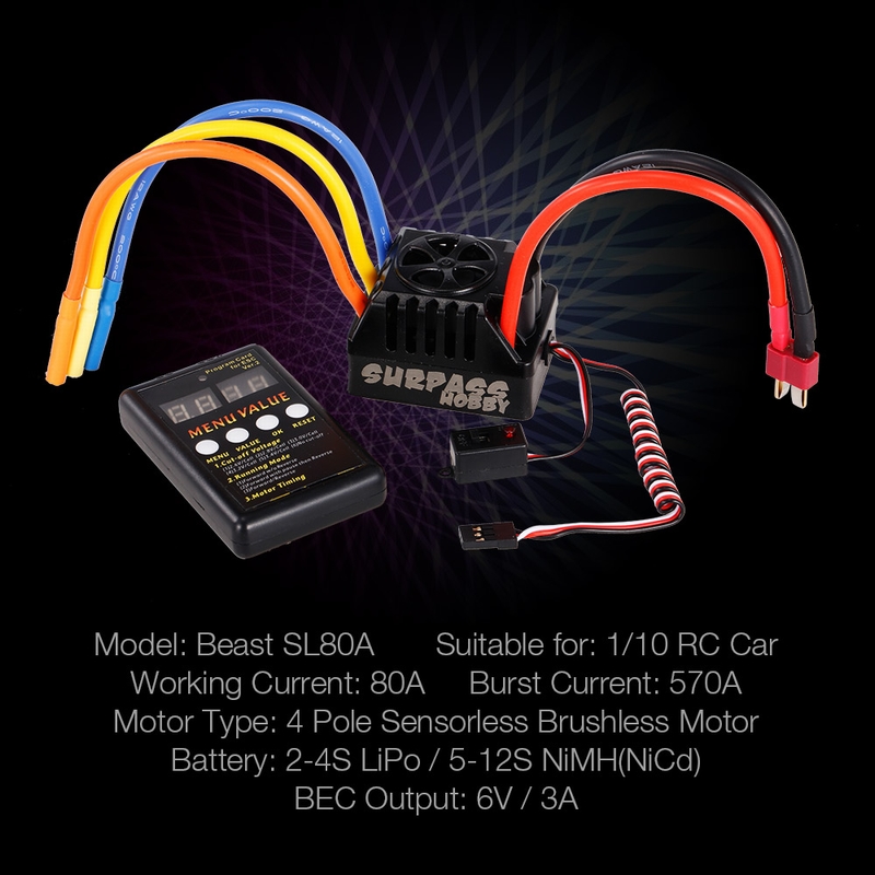 2-4S 80A brushless ESC with programming card for 1/10 RC short course, monster truck, etc.