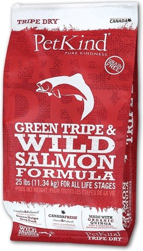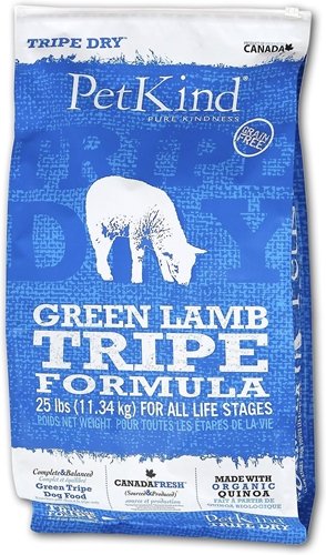 PetKind Green Beef Tripe Formula Dry Dog Food PetKind Green Beef Tripe Formula is a complete and balanced dry food for dogs of all life stages. Formulated to promote and sustain growth, it is primarily based on Green Beef Tripe and fresh, quality ingredients. Green Tripe, which is the stomach lining of a grass-fed animal, is rich in naturally occurring essential fatty acids. Gluten-free organic quinoa is added, giving an additional source of complete protein. Fruits and vegetables add to the delicious flavor, while also bring a bounty of nutrition. PetKind Dry Food is low glycemic, and contains no potato, wheat, corn, gluten, or soy. It is a great choice for dogs with food sensitivities, with a fresh taste that will please even the most particular dog. Features: For dogs of all life stages Produced in BC, Canada High-quality protein Low glycemic Great source of fatty acids Free of potato, wheat, corn, gluten, and soy Formulated to meet the nutritional levels established by the AAFCO Dog Food Nutrient Profiles for All Life Stages Item Specifications: Guaranteed Analysis: Crude Protein (min.): 32% Crude Fat (min.): 16% Crude Fiber (max.): 4% Moisture (max.): 10% Ash (max.): 8.5% Phosphorus (min.): .8% Magnesium (max.): .1% Taurine (min.): 2790mg/kg Fatty Acids (Omega 6) (min.): 3% Fatty Acids (Omega 3) (min.): 1% Calories: ME 3657 kcal/kg, 369 kcal/cup Ingredients: Beef tripe, beef, chicken, peas, chicken meal, turkey meal, pea starch, pea protein, chicken fat (preserved with mixed tocopherols), lentils, flaxseed, natural flavor, quinoa, pumpkin, spinach, carrot, broccoli, cranberry, apple, blueberry, banana, dicalcium phosphate, calcium carbonate, sodium chloride, potassium chloride, salmon oil (preserved with mixed tocopherols), chicory root, vitamins (vitamin A acetate, vitamin D3 supplement, a-tocopherol acetate, niacin, calcium pantothenate, riboflavin, thiamine mononitrate, pyridoxine hydrochloride, folic acid, vitamin B12 supplement), minerals (zinc sulfate, feFeature