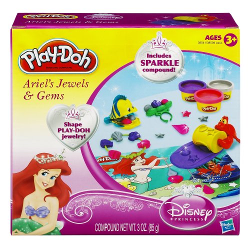 Make amazing "jewelry" fit for a princess with the Play-Doh Disney Princess Ariel's Jewels and Gems Set! Use the 3 different colors of PLAY-DOH modeling compound to roll gems, shape beads and create amazing jewelry. The sparkle compound makes your creations extra shiny!