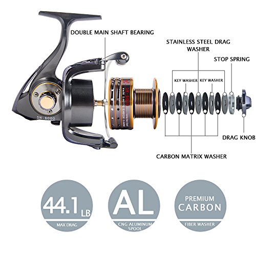 -. Title : Supertrip Saltwater Spinning Reel Carbon Fiber 44.1 LBs Max Drag Brass Gears Metal Strong Corrosion Resistance Stainless Steel Fishing Reels