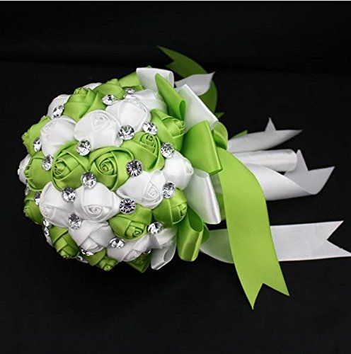 - Feature : Product Name: bridal bouquet / Weight:300g / Material:rhinestones,satin / Size:28*18cm / Silk flowers won't wilt in the heat or freeze in the cold. The consummate choice for all weather conditions.