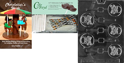 Cybrtrayd "Skull and Crossbones Lolly" Chocolate Mold with Chocolatier's Bundle, Includes 25 Lollipop Sticks and 25 Cello Bags