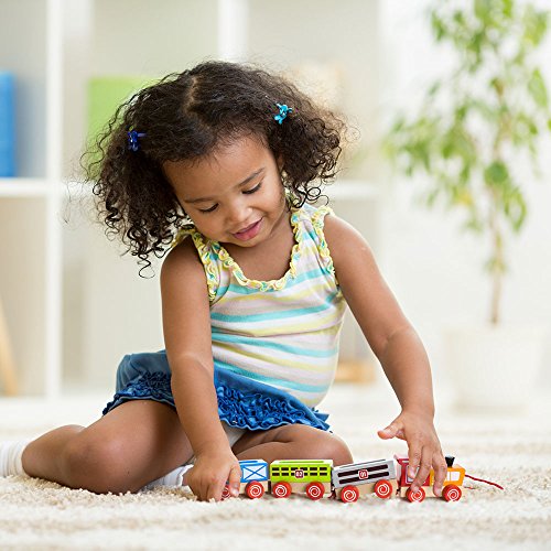 Studio : Imagination Generation Publisher : Imagination Generation Binding : Toy Product Description Toot toot! The colorful locomotive is chugging along to the livestock show, carrying the farmer's three prize animals: Bessie the dairy cow, Frederick the race horse, and Pete the pig. Can you help couple the train cars, load up the animals, and then push and pull the train along to the station? Perfect for crawlers and toddlers alike, this classic push and pull toy develops both gross and fine motor skills and promotes activity and exploration. Better yet, it's cut from blocks of natural wood and finished with safe, water-based paint. 0