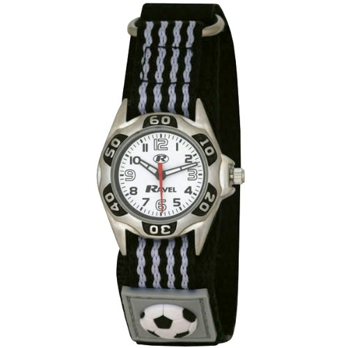 -. Title : Ravel - Kids Black And White Football Velcro Watch R1507.16