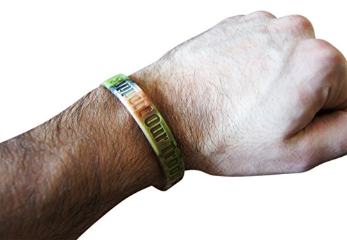 SHOW YOUR SUPPORT EVERY DAY for the brave armed forces that defend our freedom. This 3-piece Bracelet Set includes 3 adult size 8-inch silicone wristbands in three different color designs.