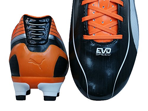 Binding : Apparel Product Description Puma evoSPEED 4 FG Mens Football Boots / Cleats - Engineered by Puma to amplify your speed on firm ground with a lightweight TPU outsole, the evoSpeed 4 football boots are made from smooth and comfortable synthetic leather. With striking new Puma branding that creates a bold look, the improved anatomic fit and central lacing provide the evoSpeed 4 FG football boots with additional comfort.A lightweight minimalistic external heel brace locks down the heel while the TPU sole plate utilises Duoflex technology and a mix of conical and bladed moulded studs for optimal traction on firm ground. 0