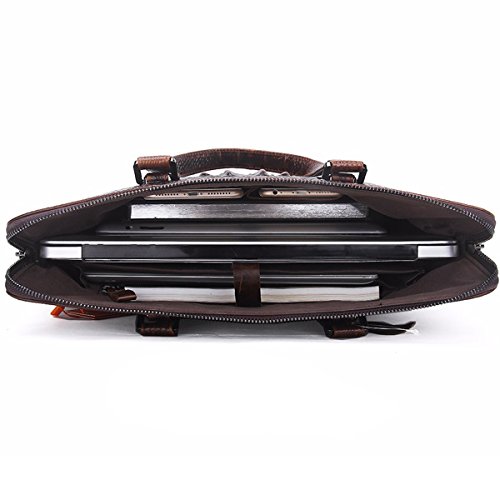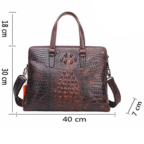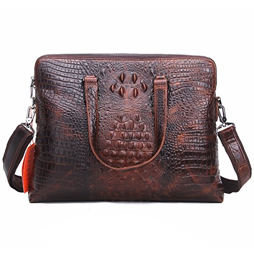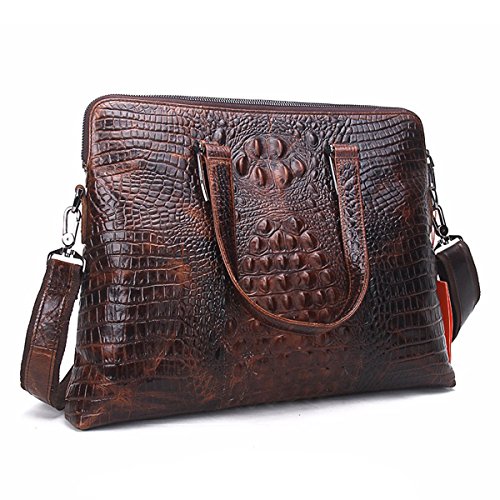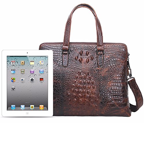 -. Feature : Briefcase Bag is made of Crocodile Embossed real leather cowhide; Inner is made of high quality cloth. It can be used in both business and casual occasion. / Dimensions (HxLxW):29x40x6.5cm/11.6"x16"x2.6"inches;Strap:80~145cm (31.2"~56.55" inches) /Handle: Height 18cm (7.2" inches) / Large laptop briefcase bag with handles and strap fit 13" 14" 15" Laptop, Ipad, 2 Zippers around Closure, also can hold A4 books / iPad/Galaxy Tab S 10.5",iPad/Kindle/Fire HD; / Main compartment with 2 multi-function pockets, 2 pen holders, 1 Ipad / laptop holder pocket with laptop sleeve/case with snap button, interior 1 zipper compartment / 100% Money Back Guarantee! If have any problem or don't satisfy, please contact us and we will refund all or resend a replacement.