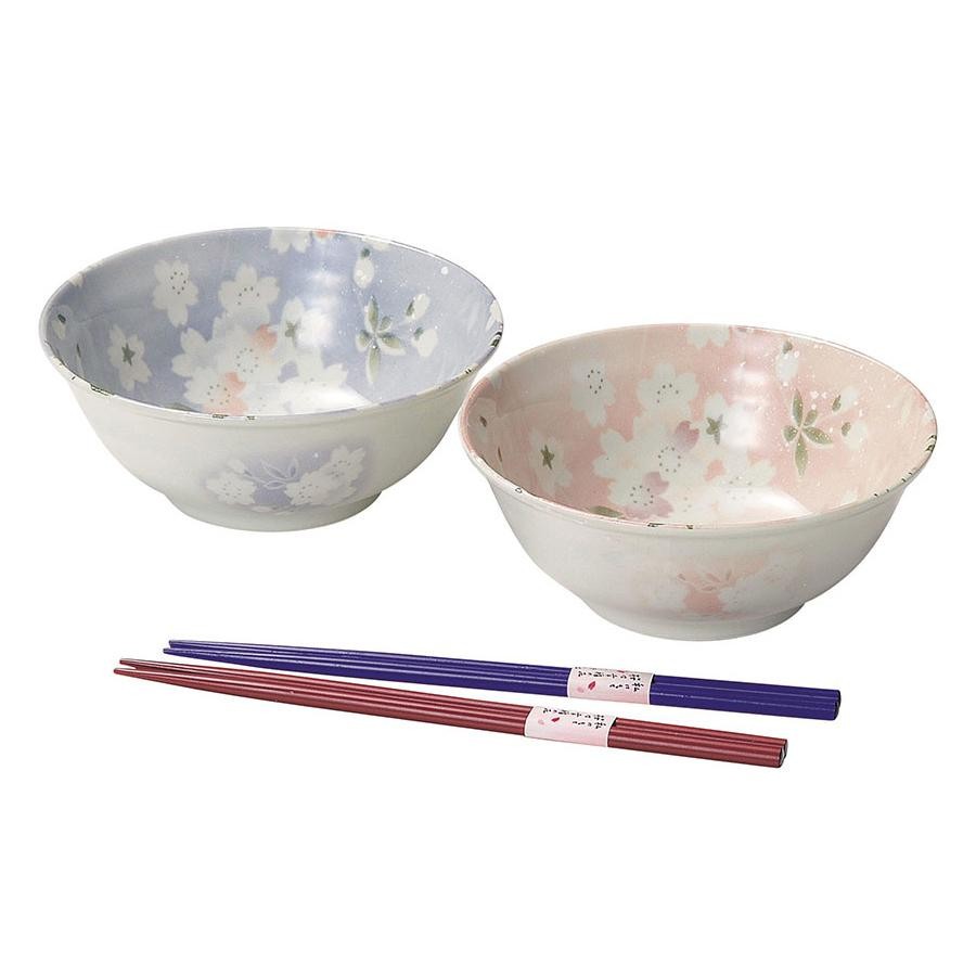 桜のデザインが可愛らしい二色の丼セットです。箸付。