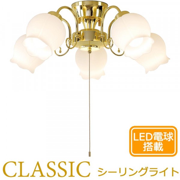 | クラシカルアンティークな王道デザインのシーリングライトです。LED電球を搭載していますが、白熱電球もご使用いただけます。 |