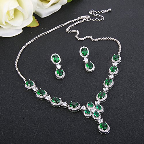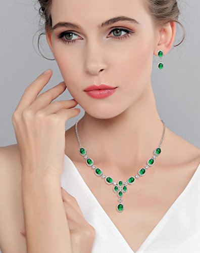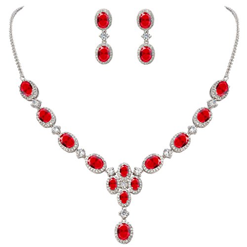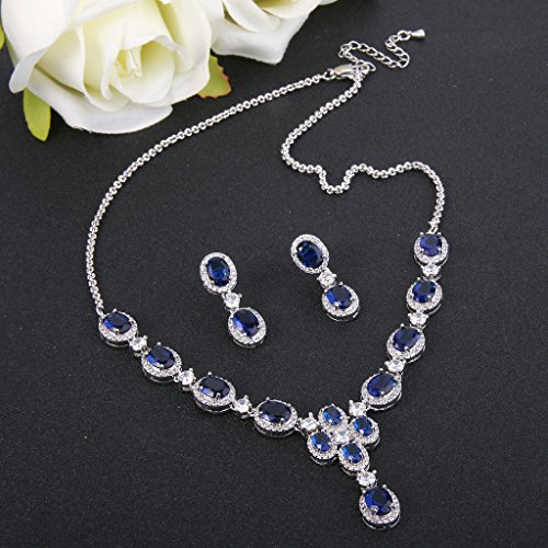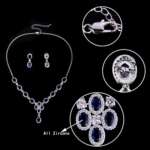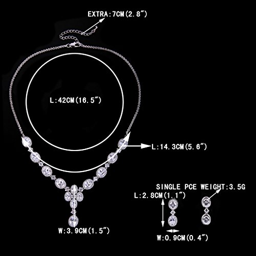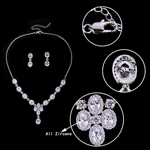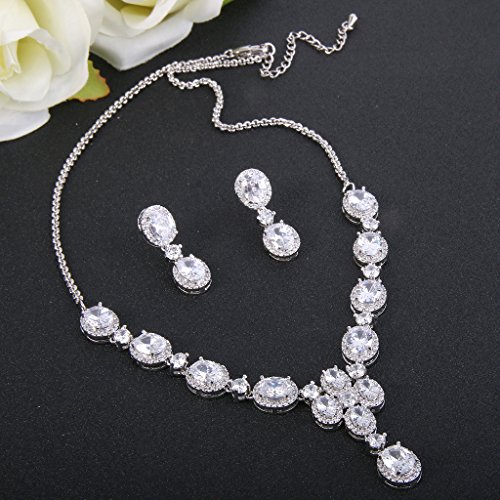 -. Title : EVER FAITH Women's Oval CZ Gorgeous Floral Teardrop Bridal Pendant Necklace Earrings Set Silver-Tone