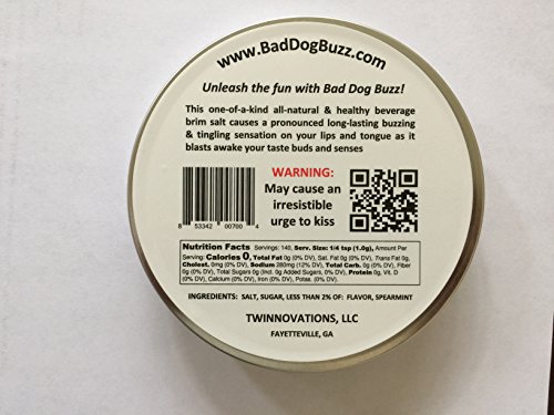 -. Binding : Kitchen -. Brand : BAD DOG BUZZ -. Color : Blue, red and green -. Feature : This blend of all-natural and safe ingredients / Creates an exciting buzzing, tingling, & mouth-watering sensation when consumed. / The perfect intensity of Salt for those cocktails and drinks best rimmed with extra flavor. / This product is safe even for young children and is used regularly in two clinics outside of Atlanta, GA to stimulate sensory systems in children as young as 3 years old. Brought to you by Twinnovations. / The active ingredients in Bad Dog Buzz act as a natural and potent flavor intensifier for up to 2 hours without the use of unhealthy artificial or chemical additives -. Label : BAD DOG BUZZ -. Manufacturer : BAD DOG BUZZ -. ProductGroup : Kitchen -. ProductTypeName : HOME -. Publisher : BAD DOG BUZZ -. Studio : BAD DOG BUZZ -. Title : MARGARITA SALT 5 OZ. Natural and potent flavor intensifier for up to 2 hours