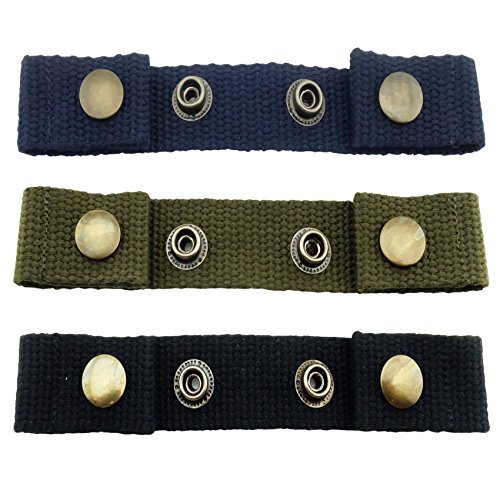 • Pack of three different color belt Black, Navy Blue and Dark Green. And the dimensions: Adjustable Length 5-6 inches x Width 1 inches.