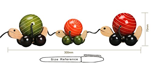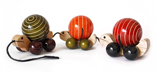 Handmade colorful wooden pull-along toy for kids aged 18 months to 4 years. Made with chemical & toxin free natural soft wood and food grade colors. Enhances balancing & motor skills, encourages creativity. US Toy Safety Standard Compliant.Train of cute little turtles : MA ME PA is a train of mama, baby and papa turtles, emphasizing on the closeness of a family. Hand crafted with great care and love, this colorful toy will spur your child's imagination.