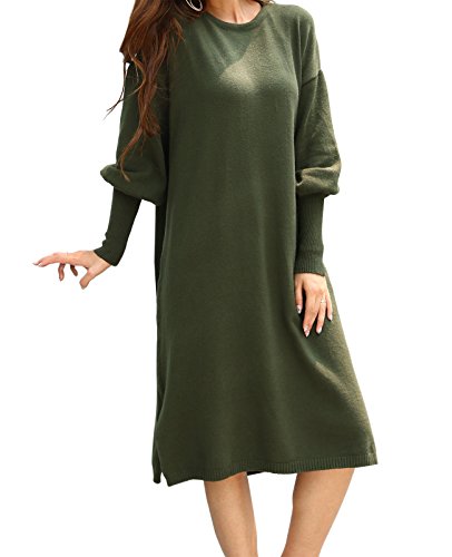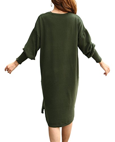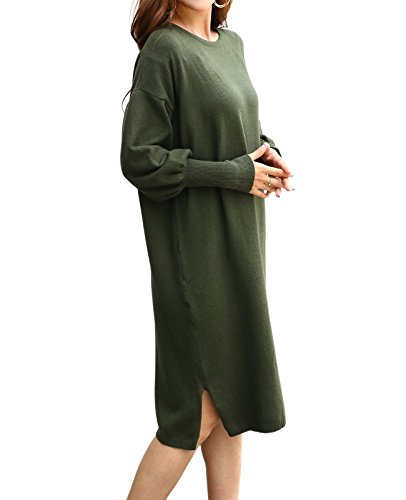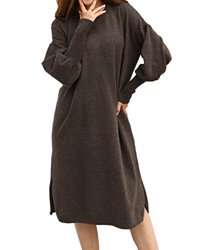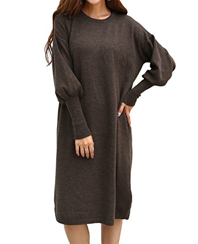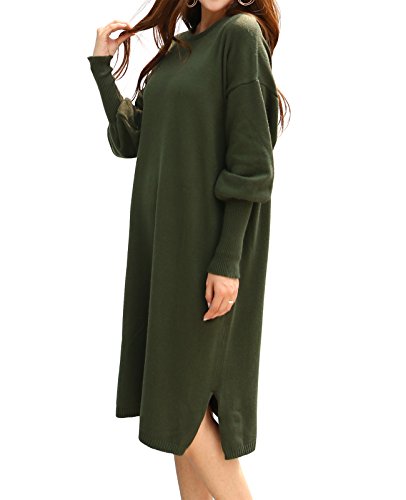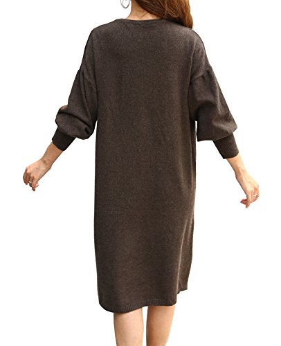-. Title : 冬 大きいサイズ ドロップショルダー 長袖 膝丈 無地 ニットワンピース レディース 4色