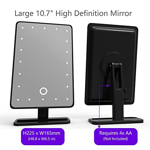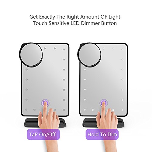 1. The Cosmetic Touch: Dimmable touch screen LED lighted makeup mirror with lights that dim as you press and hold your finger on the touch sensitive button to help you get exactly the right amount of light to touch-up your makeup or apply fake lashes.