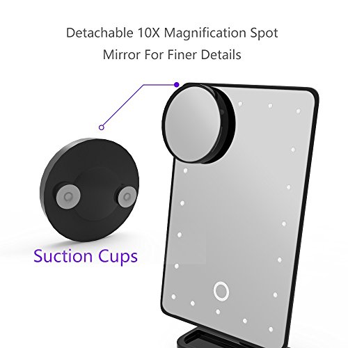 Fairycat LED Lighted Makeup Mirror,Vanity Mirror with Touch Screen Dimming, Detachable 10X Magnification Spot Cosmetic Mirror, 180° Swivel Rotation