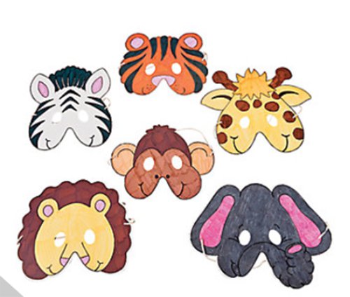 Lions and Tigers and Monkeys, oh my! When you invite your friends to your birthday party, they arrive as people and return home as jungle animals! Color the masks with crayons, markers or paint. Each 7 3/4" x 6" cardboard mask includes an elastic band. (12 masks per unit) Some assembly is required. Materials for coloring the masks are sold separately. Age Recommendation: Ages 5 & Up: Includes medium-sized pieces with the occasional angular edge. These lightweight and sturdy masks may require some assembly.Feature