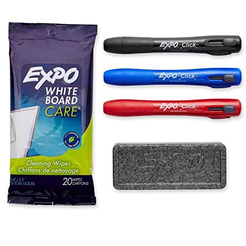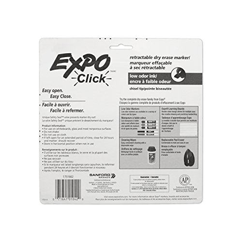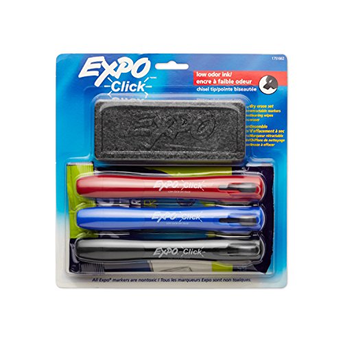 EXPO Low-Odor Dry Erase Click Retractable Marker Set, Chisel Tip, Assorted Colors, 4-Piece