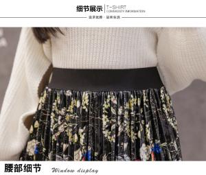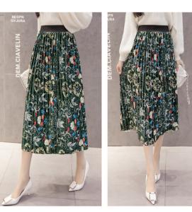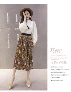 フレアスカート プリーツスカート ミモレ丈 花柄スカート ハイウエスト 秋冬 プチプラ AW ベロア 小花柄