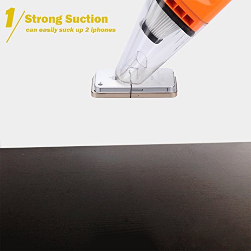 Powerful Suction:DC-12V&120W 4000PA Suction. 100% copper wire motor.It can pick up 2 iPhone 5s easily.