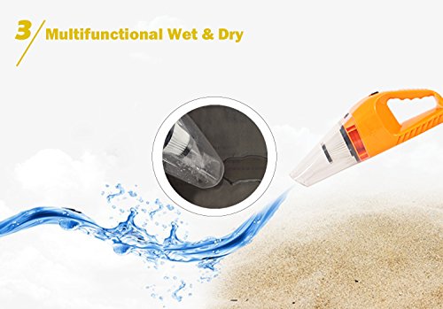 Multifunction Machine: Dry and Wet uses. It can not only remove dust,small stone, bread crumbs,debris,and other solid debris,but also suck up water, beverage,red wine,milk and other liquids. It can always keep your car clean and fresh.