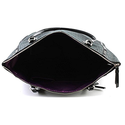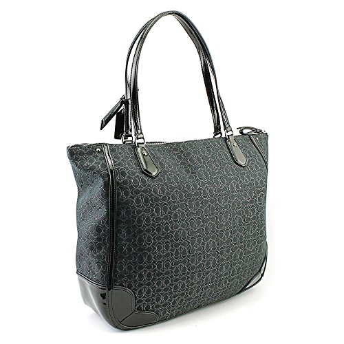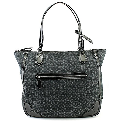 -. Title : Coach Poppy Tote In Signature C Metallic Outline Fabric (SILVER/BLACK/BLACK)