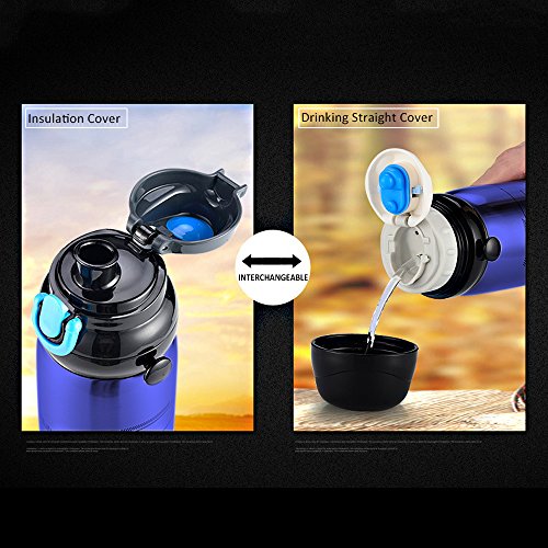 【Keep Hot or Cool More Than 12H】:Double stainless steel vaccum that keep your drinks at the perfect temperature at all times. The Thermo Mug Flask can keep your water or drink ice cold for up to 12 hours and your tea, coffee or soup warm for up to 12 hours! Great for all seasons.