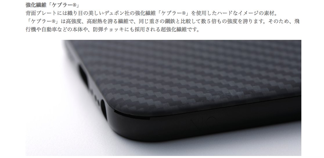 On the back of the case, we adopted two kinds of "Kevlar" which is a beautiful texture of Du Pont and "Ebony (Ebony)" which is gentle with natural feeling.