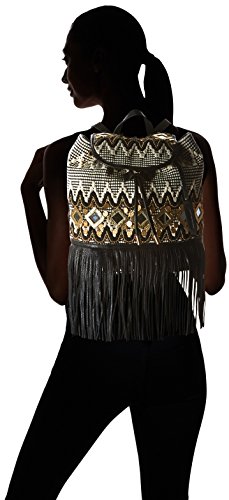 -. Feature : Embroidered and beaded backpack with fringe