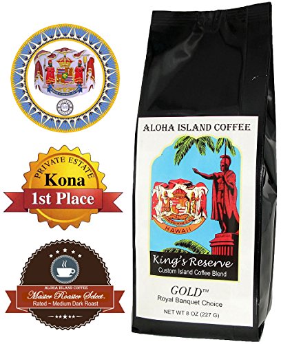 Kona Hawaiian Coffee, Kings Reserve GOLD, Custom Medium-Dark Roast, 8 Oz Whole Bean