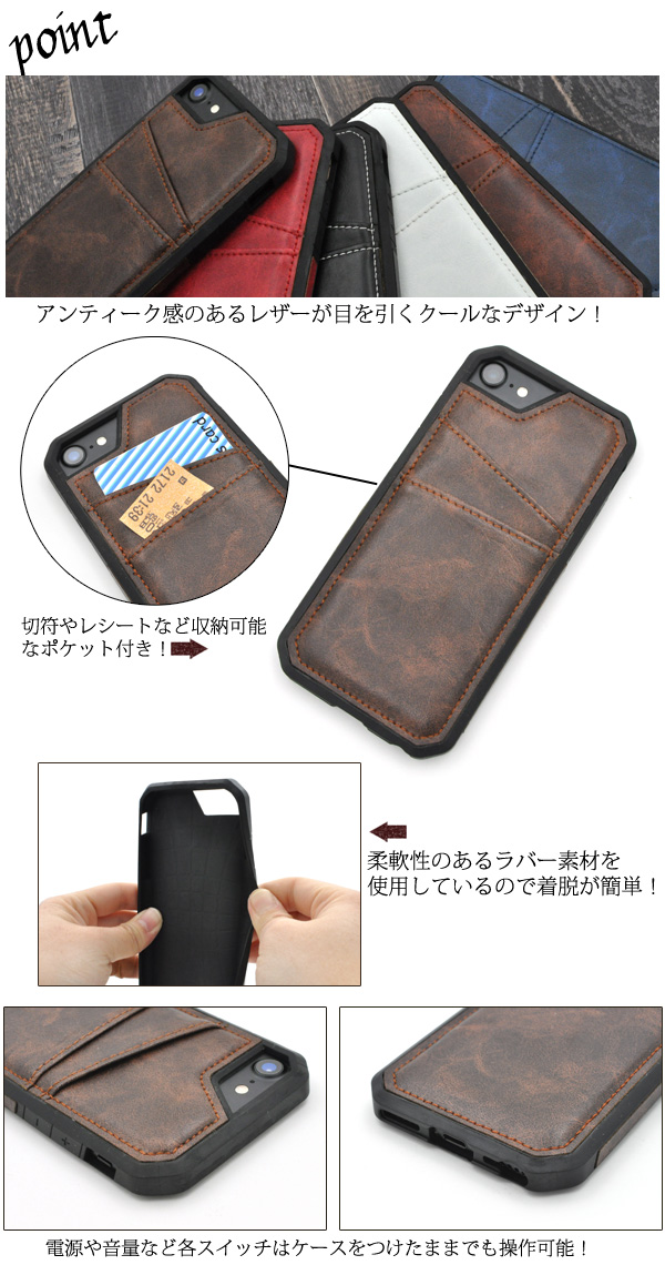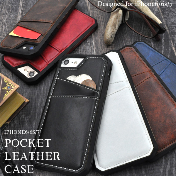 ポケット付きレザーデザインケース