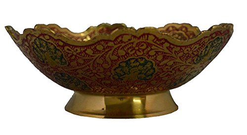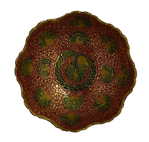 Zap Impex Golden Plated Brass Decorative Dry Fruit Bowl carving Work - Size- 5" Beautiful Red Color Peacock design Kitchenware Gift