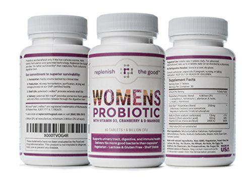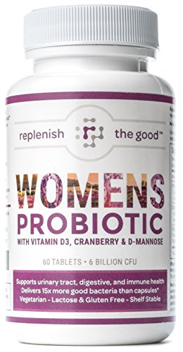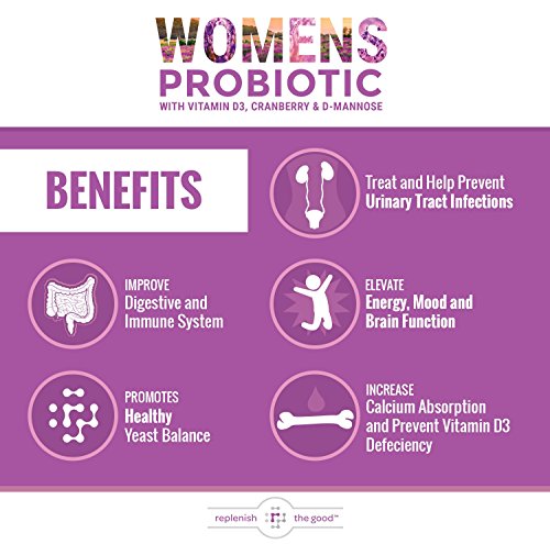 -. Binding : Health and Beauty -. Brand : Replenish The Good -. EAN : 0684334947066 -. Feature : IMPROVE URINARY TRACT, VAGINAL, BREAST & INTESTINAL HEALTH- Looking for a UTI treatment, yeast infection relief, or simply looking to balance your intestinal flora? Our Women's probiotic supplement has 6 Billion CFU, non-synthetic D-Mannose & Cranberry juice which replenish the good bacteria in your gut to support urinary tract, vaginal, breast and digestive health, while reducing bloated stomach & acid reflux. / SUPERIOR SURVIVABILITY- Probiotics are only beneficial if they can survive their journey through the harsh digestive tract. Our patented time release BIO-tract® system protects the good bacteria as they pass through the digestive tract to deliver 15x (compared to regular capsules) more good bacteria to the small & large intestines where they can go to work repairing damage caused by stress & diet. / PROTECT YOUR BRAIN AND IMPROVE DIGESTION & IMMUNITY- Groundbreaking new studies now show that your brain, your immune system and your gut microbes are intricately linked. Replenish The Good Womens Probiotic includes 4 top strains recommended by a leading neurologist that help prevent leaky gut, reduce inflammation & improve overall health. / ELEVATES ENERGY & MOOD- Our Women's formula helps force out the bad bacteria so the good guys can move in to create a healthy microflora environment where vitamins and nutrients are more readily absorbed. New studies have shown that certains strains of probiotics (included in our formula) can even help reduce anxiety & depression. / CLINICALLY RESEARCHED INGREDIENTS. We believe we have formulated the best probiotic for UTI treatment, containing D-MANNOSE helps prevent urinary tract infections because it inhibits bacteria from adhering to the walls of the urinary tract. If bacteria can't latch onto your bladder, it's less likely to cause an infection. Vitamin D3 deficiency is estimated to affect over 50% of Americans and can be especially harmful to women's health. -. IsAdultProduct : 0 -. Label : Replenish The Good -. Manufacturer : Replenish The Good -. ProductGroup : Health and Beauty -. ProductTypeName : HEALTH_PERSONAL_CARE -. Publisher : Replenish The Good -. Studio : Replenish The Good -. Title : Womens Probiotic 60ct, 6 Billion CFU with Cranberry, D-Mannose, Vitamin D3. Best Probiotics for Women, Delivers 15X More Good Bacteria. Yeast & Urinary Tract Infection UTI Treatment. 30 Day Supply -. UPC : 684334947066
