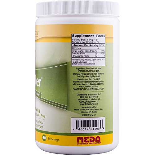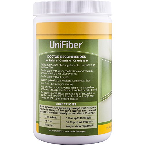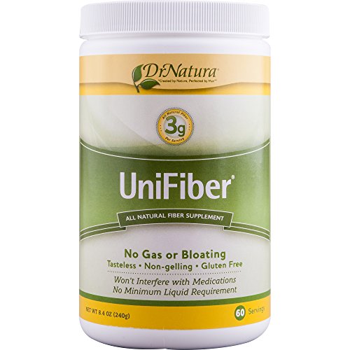 ReleaseDate : 2010-08-23 Studio : DrNatura Publisher : DrNatura Binding : Health and Beauty Product Description Unifiber is an all natural insoluble fiber supplement for the prevention or relief of constipation. unifiber, made from pure virgin plant cellulose, offers some distinctly significant benefits, especially for those patients on restrictive diets or taking other medications. unifiber is the only completely insoluble fiber supplement on the market. insoluble fiber helps food pass through the intestines without causing gas or bloating. 0