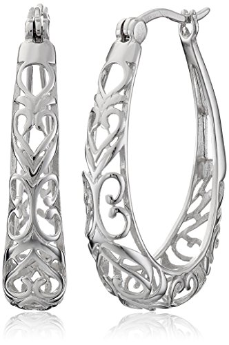 -. Title : Sterling Silver Filigree Hoop Earrings