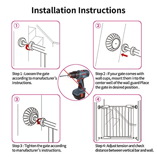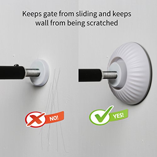 Do not worry any more! Mo-Su can offer you the best solution. Look how these wall guard pads feature and work...? -3.15" diameter rubber base-larger contacting area, better protection!? - keep your pressure gates securely in place and provide safety for the toddler and puppy! - Protect your wall from any dents or scarring when baby shaking the gate! -Super easy and quick to install with a pressure mounted gate. No any tools needed! -Multi-functional: Used for baby safety gate, dog gate, walk through gate and even curtain tension rod!