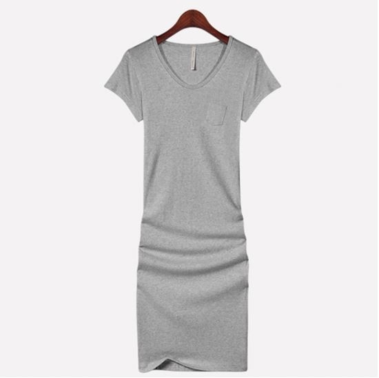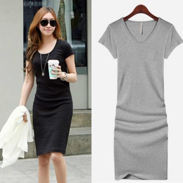 無地/半袖/タイト/Uネック/ドレス/ワンピ