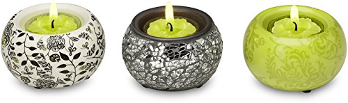 Up Words by Pavilion Chartreuse Mini Tea Light Candle Holders, Set of 3, Each 2-1/2-Inch Long, Tea Light Candles Included