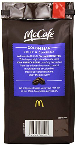 Welcome to McCafe Colombian coffee. This single-origin blend is made with 100% Arabica beans cafefully harvested from the unique climate and coastal mountain solis of Colombia. Delicious starts right here. Enjoy the discovery!Feature