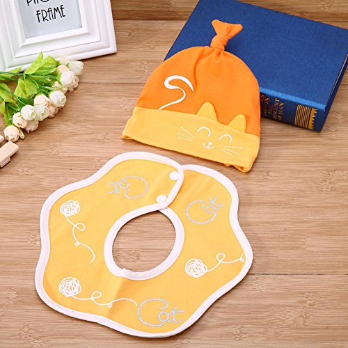 Description for hat: Size: hat circumference: 35-44cm/13.77-17.32in Age recommended: 1-18months, good elasticity. Material: cotton 95% Description for bib: Feature: Fashion round neck baby bib, no worries about wearing crooked, it is 360 degree rotation, just rotate it and continue using it. Waterproof: excellent Fading: no Pilling: no Size: neck circumference(inner) diameter :? 8cm/3.15inch. outer diameter:? 25cm /9.8in Tile size: approx. 25 x 25cm/9.8 x 9.8in Notes: 1. Due to the different monitor and light effect, the actual color of the item might be slightly different from the color showed on the pictures. Thank you! 2. Please allow slight measuring deviation due to manual measurement 0 |
