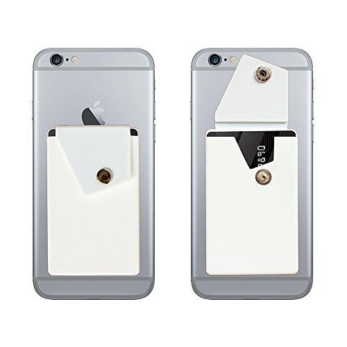iphone card holder,Phone Card Holder, Cell Phone 3M Adhesive Stick on Wallet with Button Sticky on the Phone/Case back for iPhone,Samsung,LG,Motorola,HTC (Snow White)