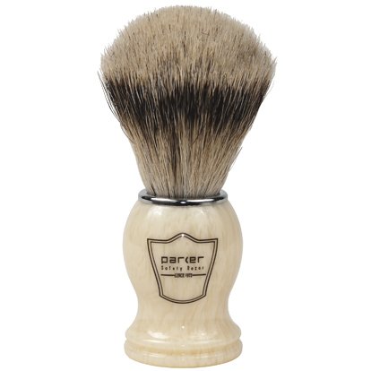 Parker Safety Razor 100% Silvertip Badger Bristle Shaving Brush (Ivory Handle) & Free Shaving Brush Stand