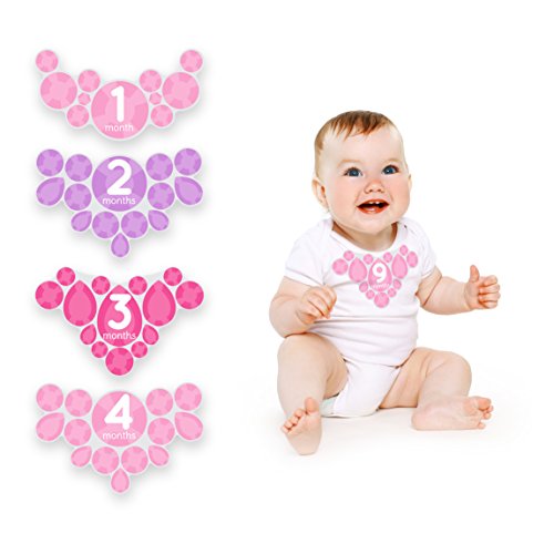 -. Binding : Baby Product -. Brand : Tiny Ideas -. Color : Necklace -. Department : baby-girls -. EAN : 0698904961864 -. Feature : Our First Year Necklace Stickers are a great way to commemorate your baby's monthly milestones / Includes 12 monthly necklace stickers; Easy to peel and stick on clothing / Record your baby's age from 1-12 months / Snap a photo with your baby and sticker and share with friends and family or on social networks like Instagram, Facebook, and Twitter / Makes a great baby shower gift -. IsAdultProduct : 0 -. Label : Pearhead -. Manufacturer : Pearhead -. Model : 96186 -. MPN : 96186 -. NumberOfItems : 1 -. PackageQuantity : 1 -. PartNumber : 96186 -. ProductGroup : Baby Product -. ProductTypeName : BABY_PRODUCT -. Publisher : Pearhead -. ReleaseDate : 2016-03-25 -. Studio : Pearhead -. Title : Tiny Ideas First Year Monthly Milestone Necklace Photo Sharing Baby Belly Stickers, 1-12 Months, Pink -. UPC : 698904961864