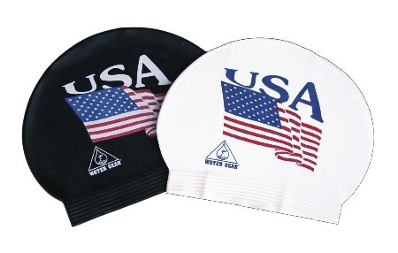 Water Gear Latex Swim Cap USA Flag - White