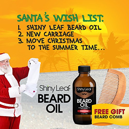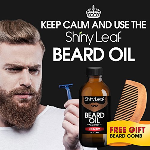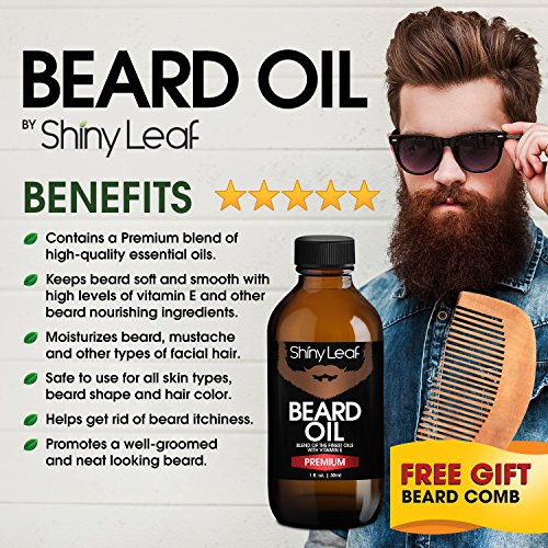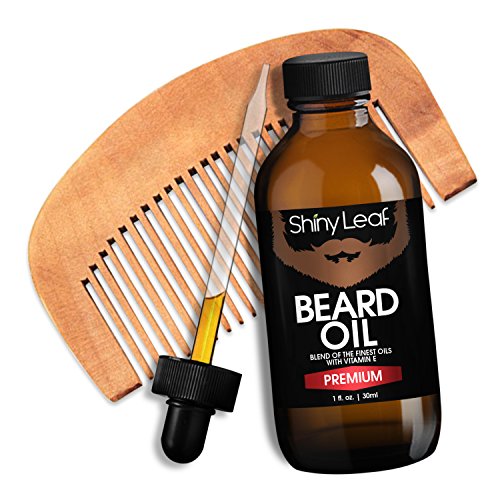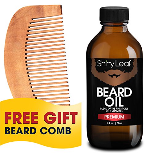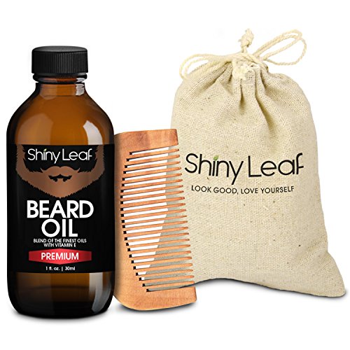 Shiny Leaf Beard Oil Set - Beard Oil Bottle 1oz With A Pear Wood Beautiful Comb, Grooms, Softens And Protect Your Beard, Goatee And Mustache, Prevent...