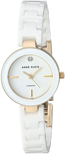 Anne Klein Women's AK/2660WTGB Diamond-Accented Gold-Tone and White Ceramic Bracelet Watch