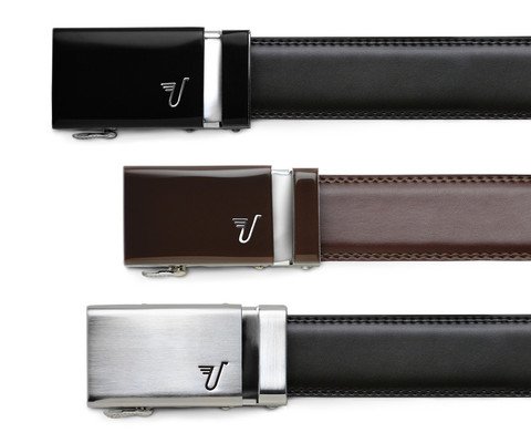 Good things come in threes and great things come in threes wrapped in an awesome gift box. The perfect gift for anyone with pants. The box is matte black and measures 9.5" x 6.5" x 5.5" with premium foil embossing and a magnetic closure. Once you receive your Premium Gift Box you can interchange the belts and buckles in the set. Bonus!