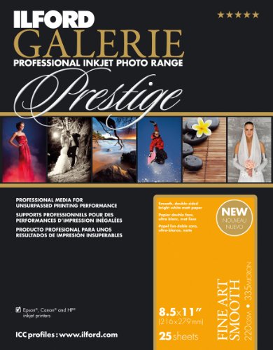 GALERIE Prestige Fine Art Smooth paper complements its Prestige Gold Cotton Smooth counterpart by offering a double-sided alpha cellulose alternative capable of delivering stunning contrast and sharpness along with extra punch for brilliant colors and intriguing separation in black and white prints. With a very high cellulose content, upwards of 93%, these fine art papers have many of the same properties as a cotton paper including a luxurious feel, excellent durability and longevity. With their ability to draw out sharp crisp details to the final print, professional and enthusiast fine art photographers and printers can preserve the integrity of their creative vision. Fine Art Smooth is available in sheets and rolls and is compatible with both pigment and dye based printers.Feature