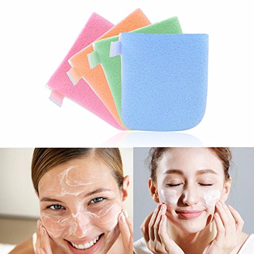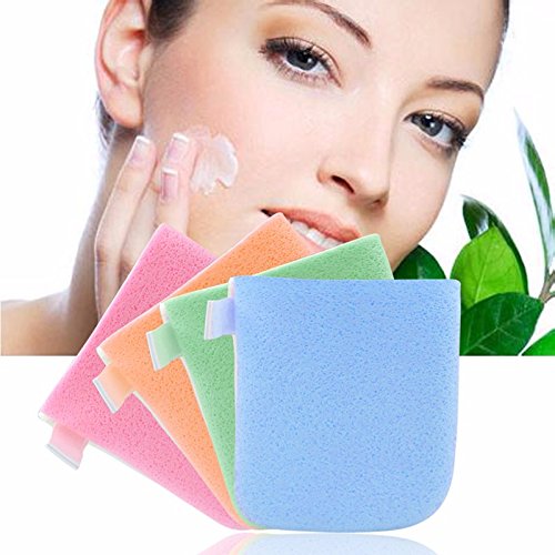Coobbar 4pcs Candy Color Double Side Soft Face Cleaning Pad Cosmetic Puff Face Cleansing Sponge Face Washing Gloves