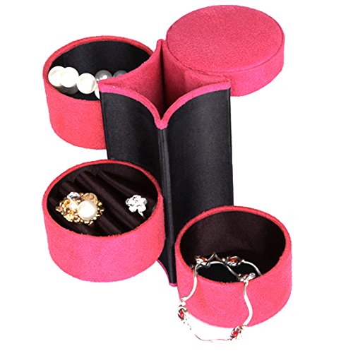 -. Feature : This jewelry storage case is a beautiful and practical tool for girls / 3 independent tiers can hold your jewelry, bracelet, ring, necklace, earring and much more / Snap button design, easy to open and roll up / Soft inner material won't scratch your jewelries / Durable and hard MDF box won't out of shape